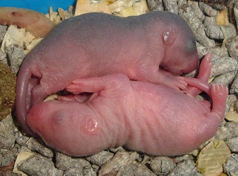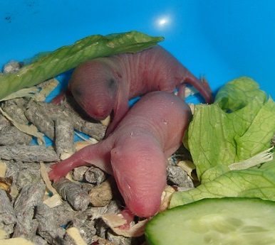Šestinednní miminka - Dorotka (18 g) a Dartagnan (17 g)
